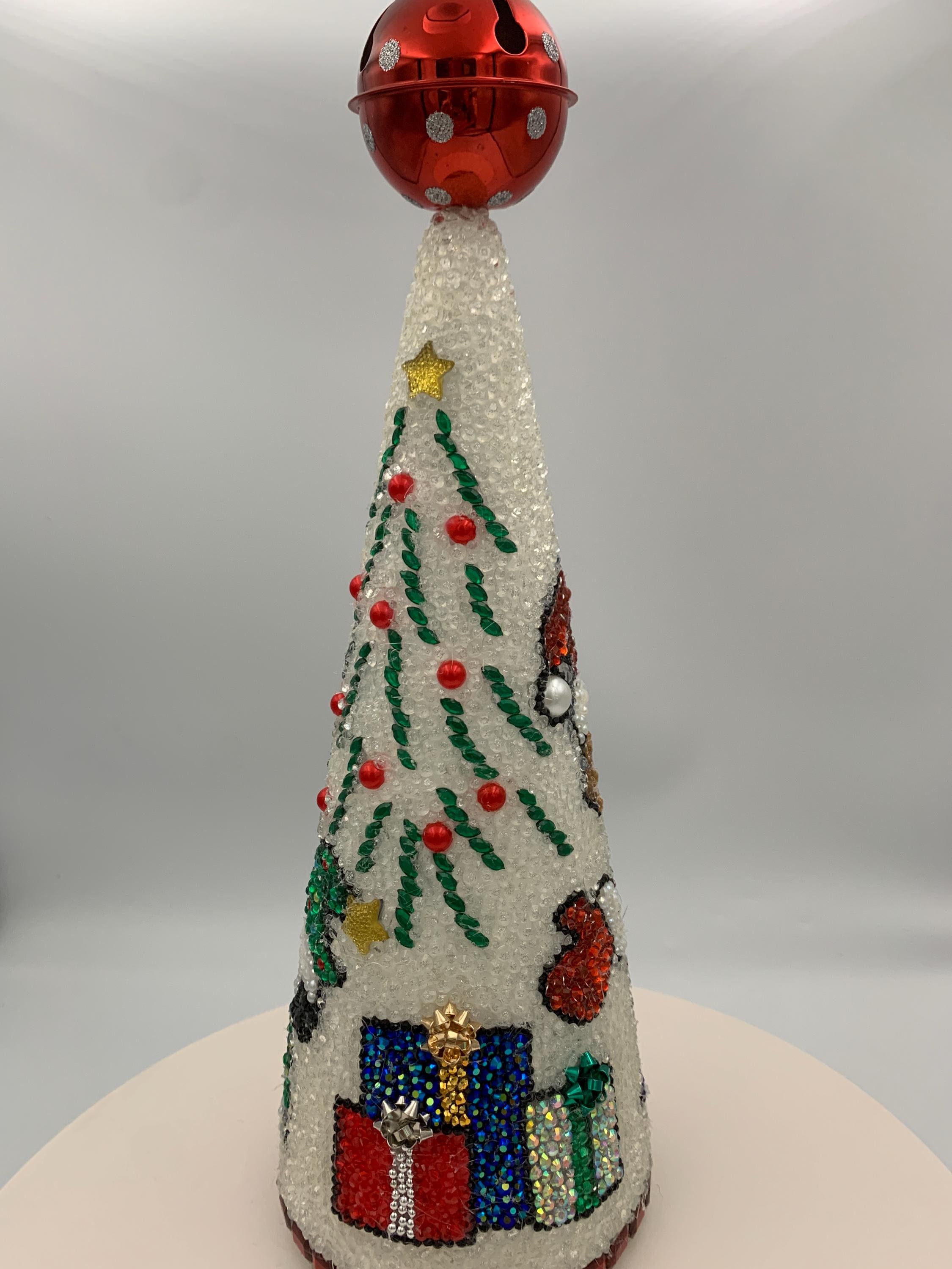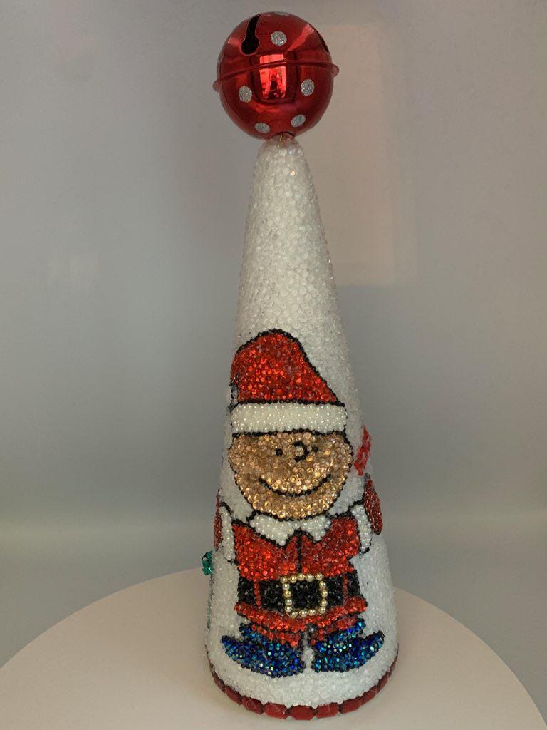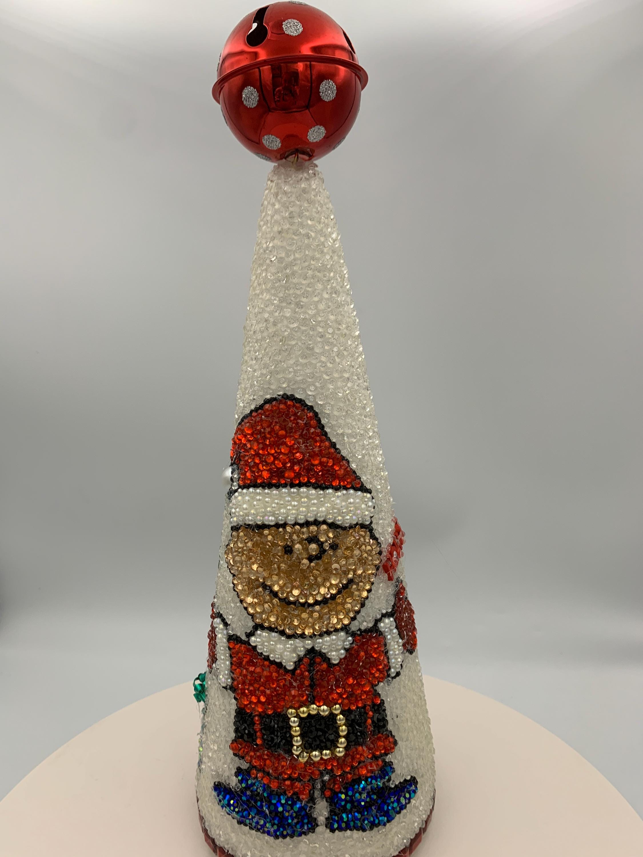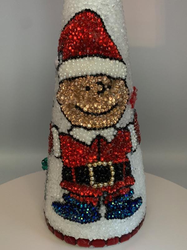 Arms open wide to embrace the Christmas Season, Charlie is all ready, decked out in his Santa Suit! Super cute and sparkly tabletop tree, measuring 14" tall. As with all my trees, one of a kind, never to be duplicated and completely handmade...one rhinestone at a time! If you're a fan, or have someone who is on your Christmas list, grab it before someone else does!
