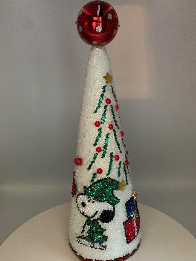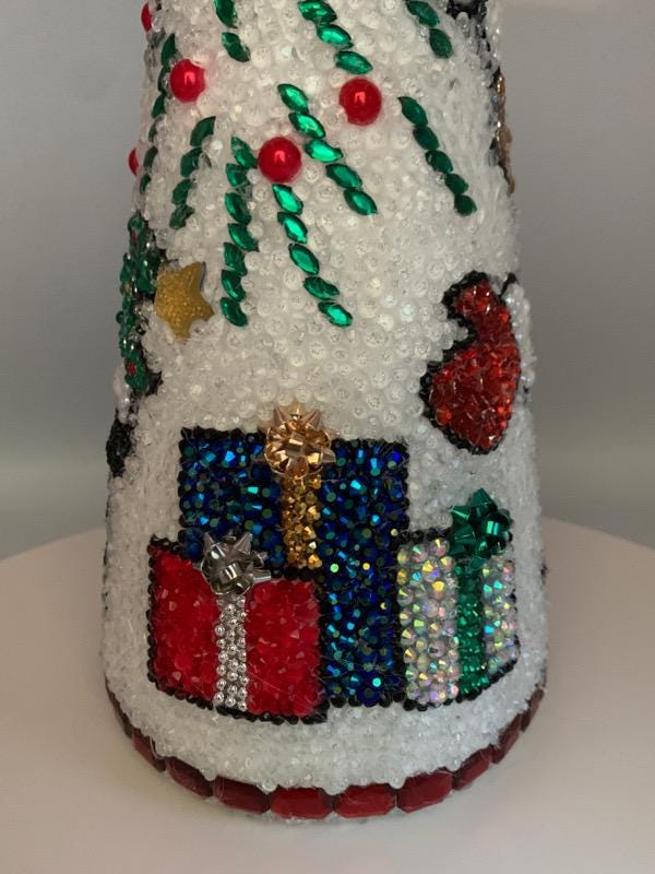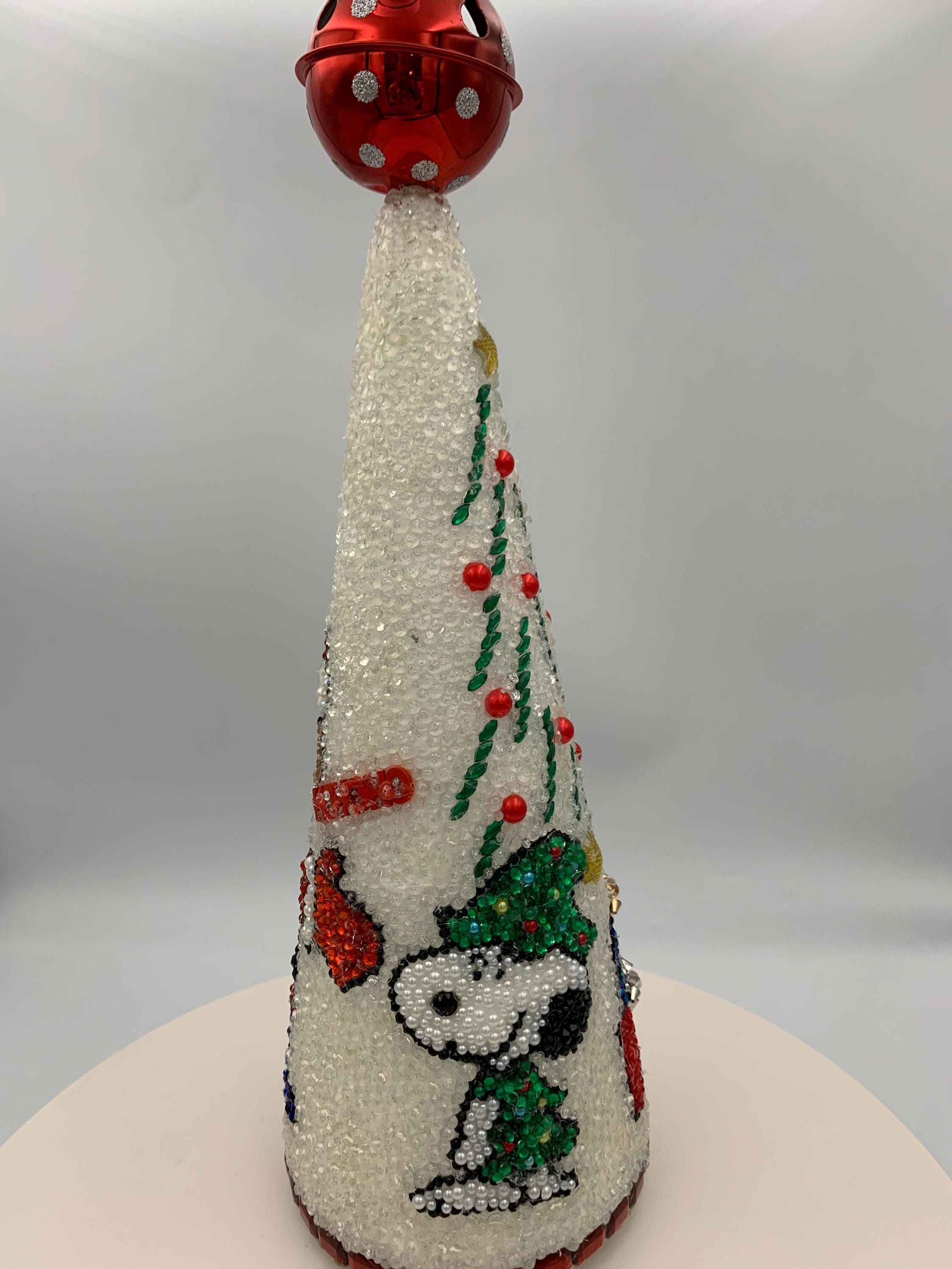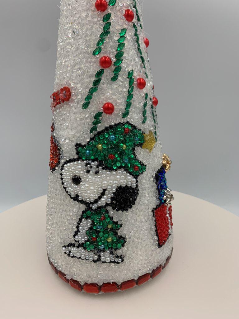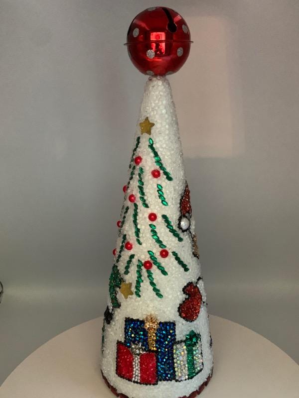 Arms open wide to embrace the Christmas Season, Charlie is all ready, decked out in his Santa Suit! Super cute and sparkly tabletop tree, measuring 14" tall. As with all my trees, one of a kind, never to be duplicated and completely handmade...one rhinestone at a time! If you're a fan, or have someone who is on your Christmas list, grab it before someone else does!