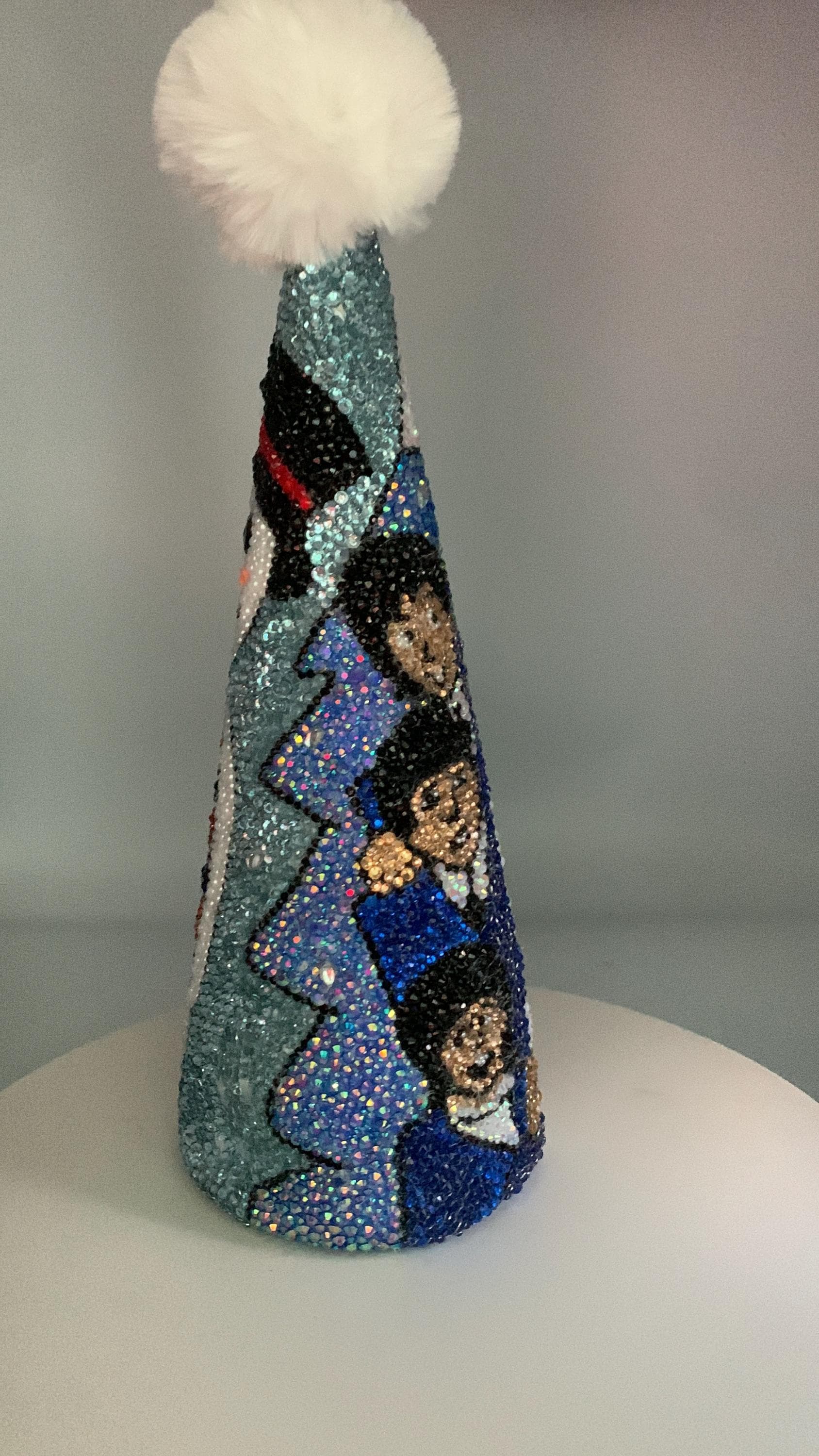 If you grew up with these cartoons on Saturday morning and you're still a Beatles fan, here's a cute holiday edition to add to your decorations this year! The Fab Four are peeking behind a snowman they built, and the rhinestones covering the tree sparkle, sparkle, sparkle! Beautiful piece for your collection, or as a gift to any Beatlemania fan! As with all my trees, this is a one of a kind, never to be duplicated.
