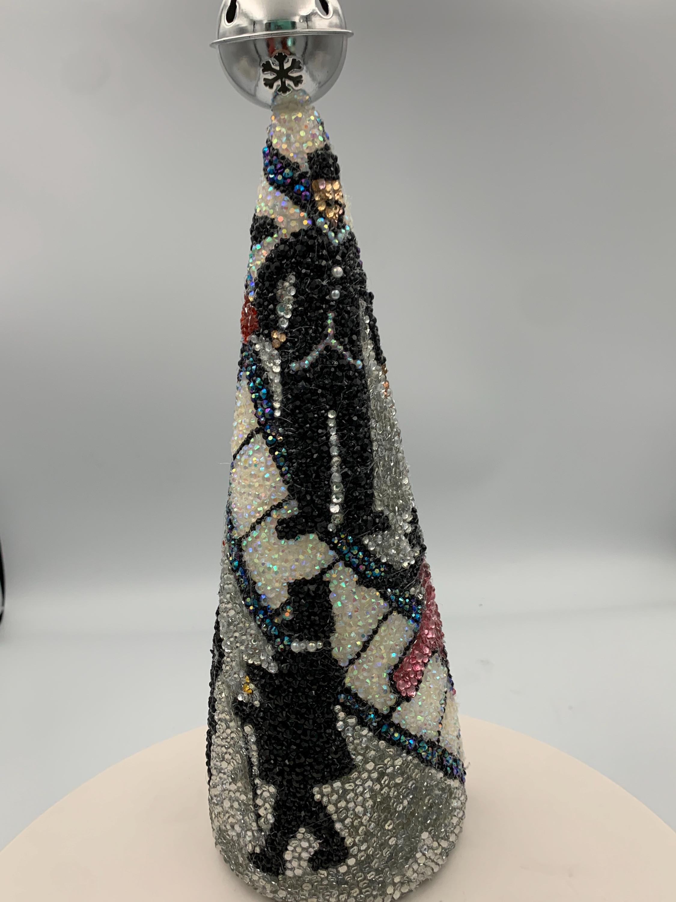 This is one of my favorites. Against a film strip background are the silhouettes of stars from the golden era of the silver screen: there's Charlie Chaplin, Mae West, Laurel & Hardy, WC Fields, Shirley Temple and Fred and Ginger (no last names needed for that pair!) A beautiful piece and if either you are a fan of these movies, or know someone who is, this a great piece to add to their collection. As with all my trees, this is a one of a kind and will not be duplicated.
